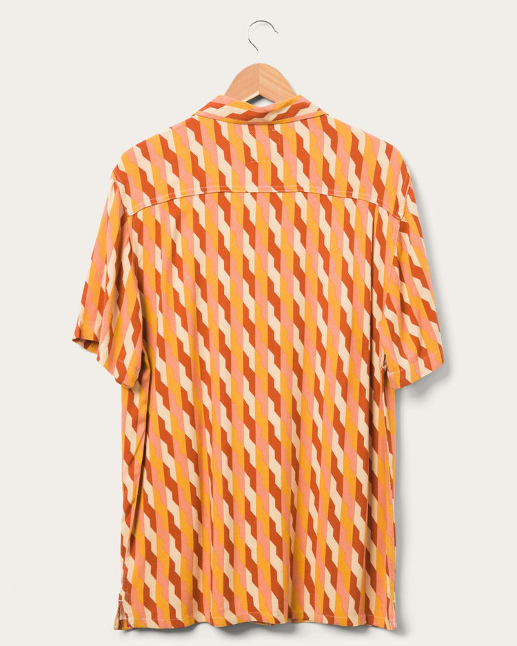 Our Men's Alexei Rayon Camp Shirt is a classic camp shirt with a refined geometric print in a rayon fabrication. The shirt features an open collar, square hemline and oversized patch pocket and is the perfect, go-to for weekend barbeques.