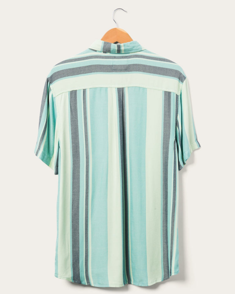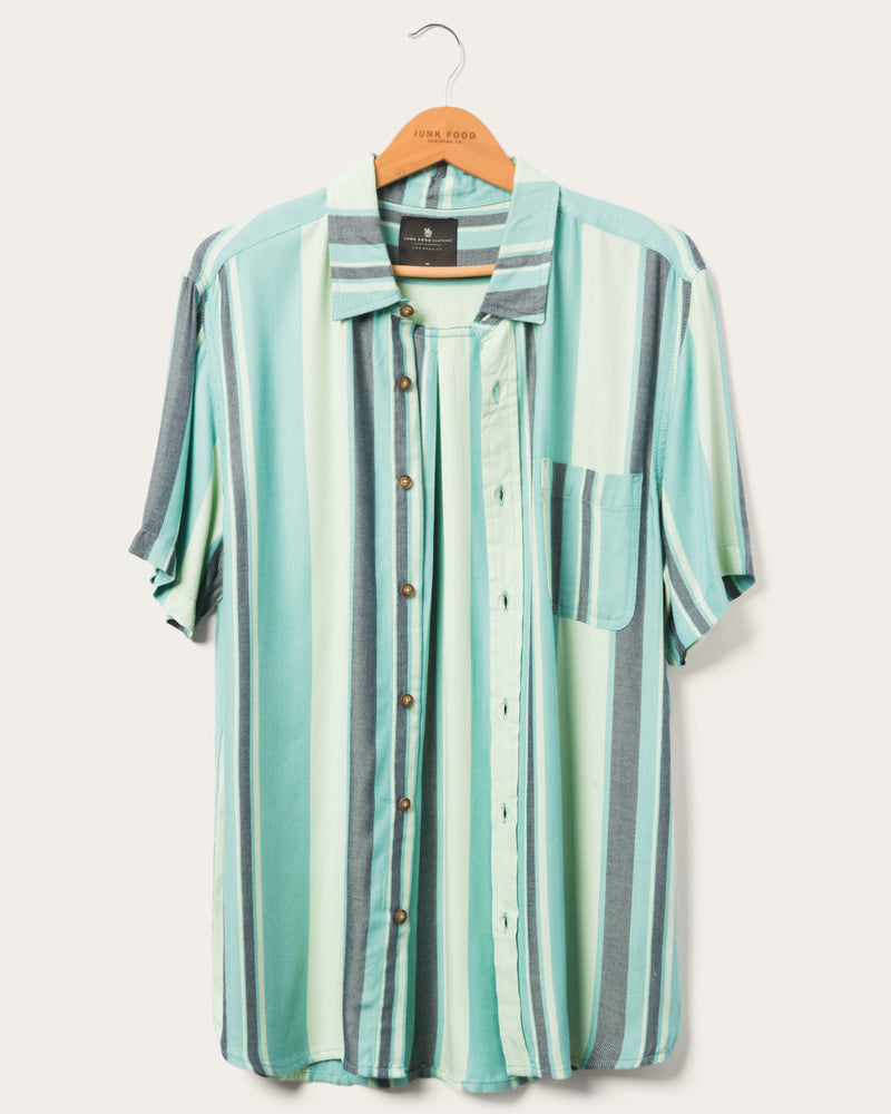 Style up your stripes with this lightweight cotton-rayon in shades of green. Prewashed, 100% cotton makes this short sleeve super comfortable, and you make it fresh.