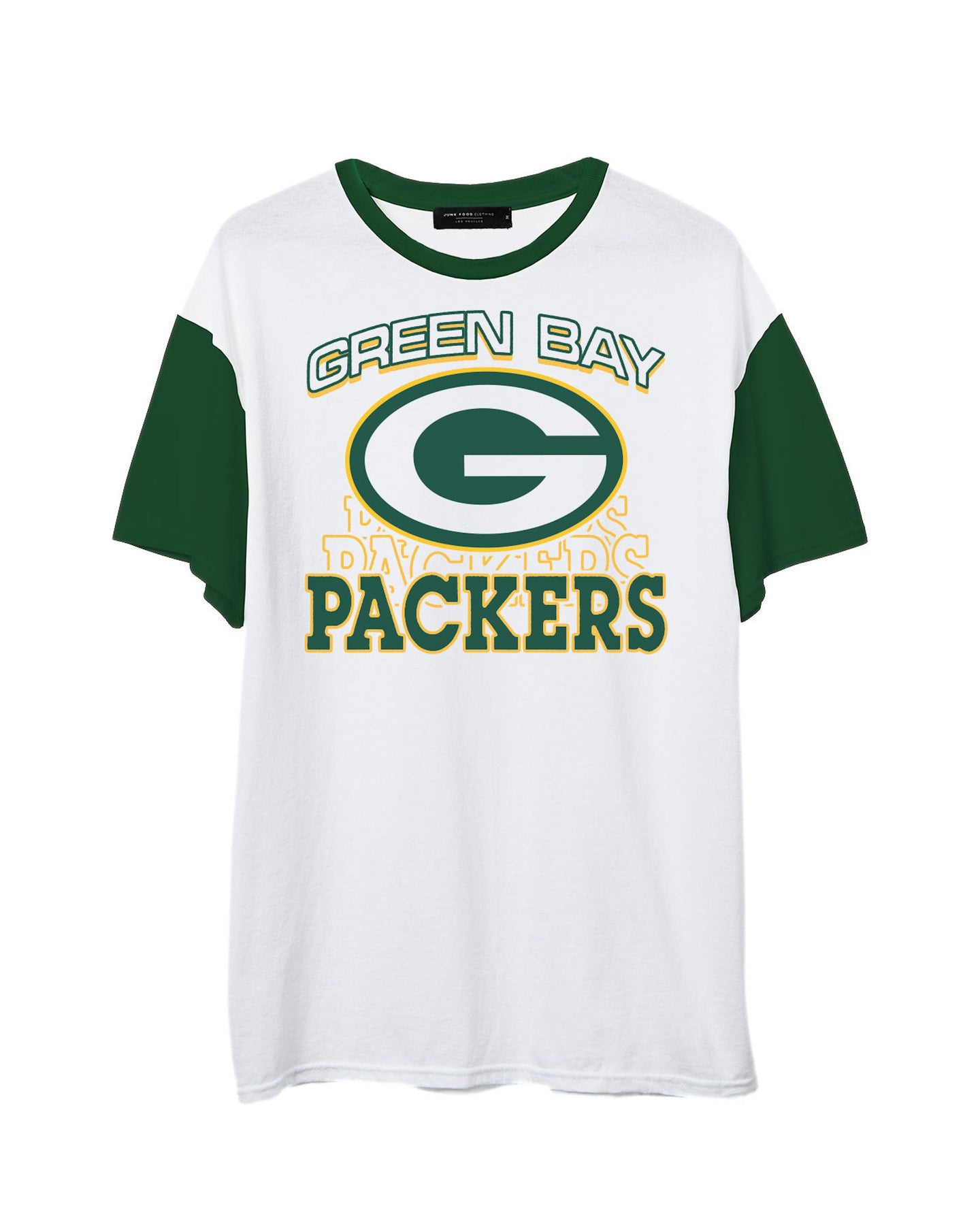 Stay sporty and fresh in our new NFL Green Bay Packers Color Block t-shirt. Made of a loose knit 100% cotton jersey and featuring contrast team colors on the sleeve, as well as a graphic logo on the center front of the shirt. This relaxed tee is perfect for whatever you have planned.