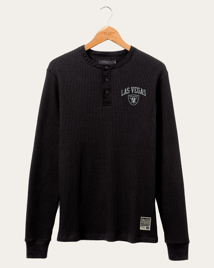 Become the talk of the town in our NFL Thermal Henley. Made from a combination of 60% cotton and 40% polyester this henley has it all. Featuring a graphic print on the left chest and a woven NFL team accent label. This is the only henley that you will ever need. Go Raiders!