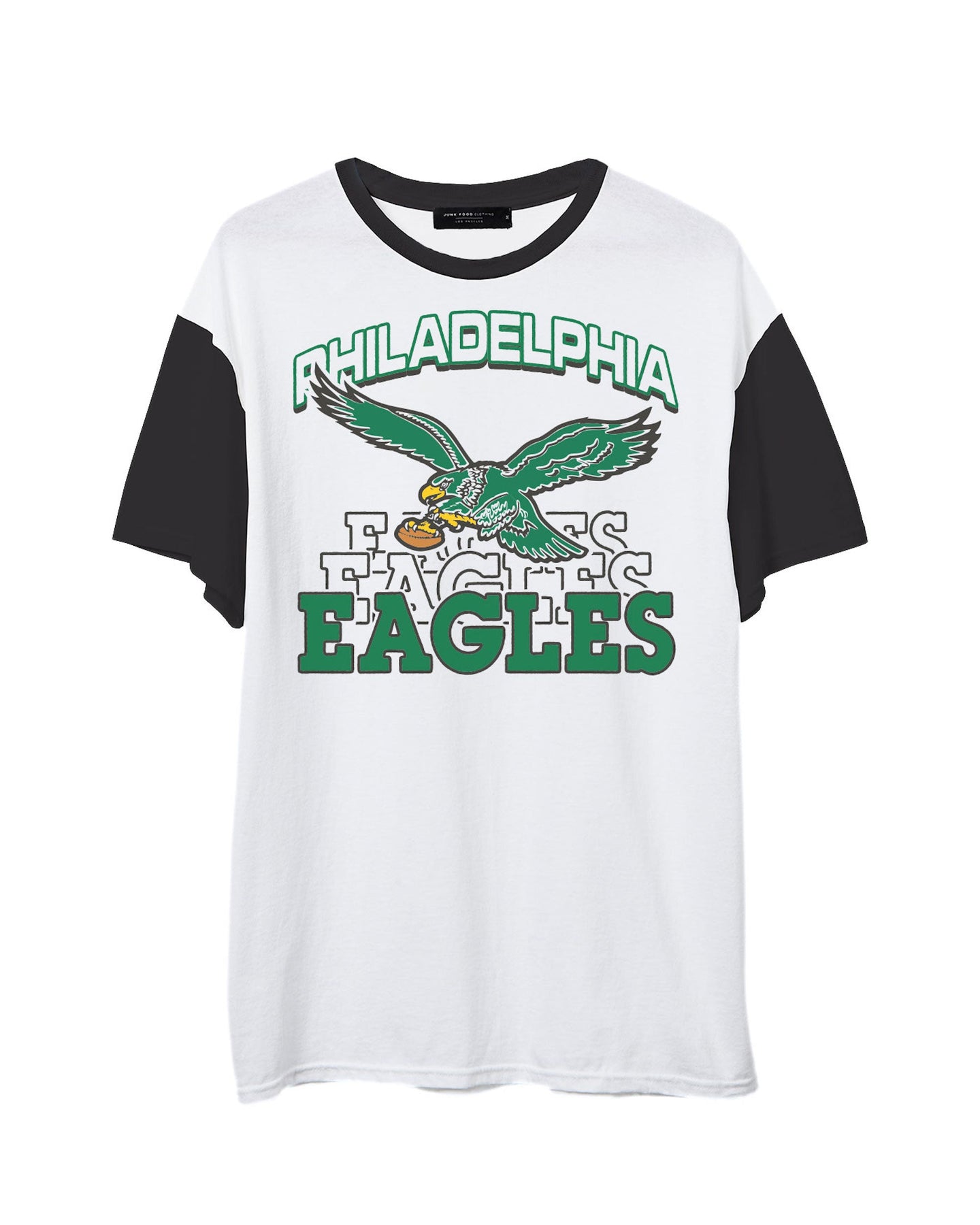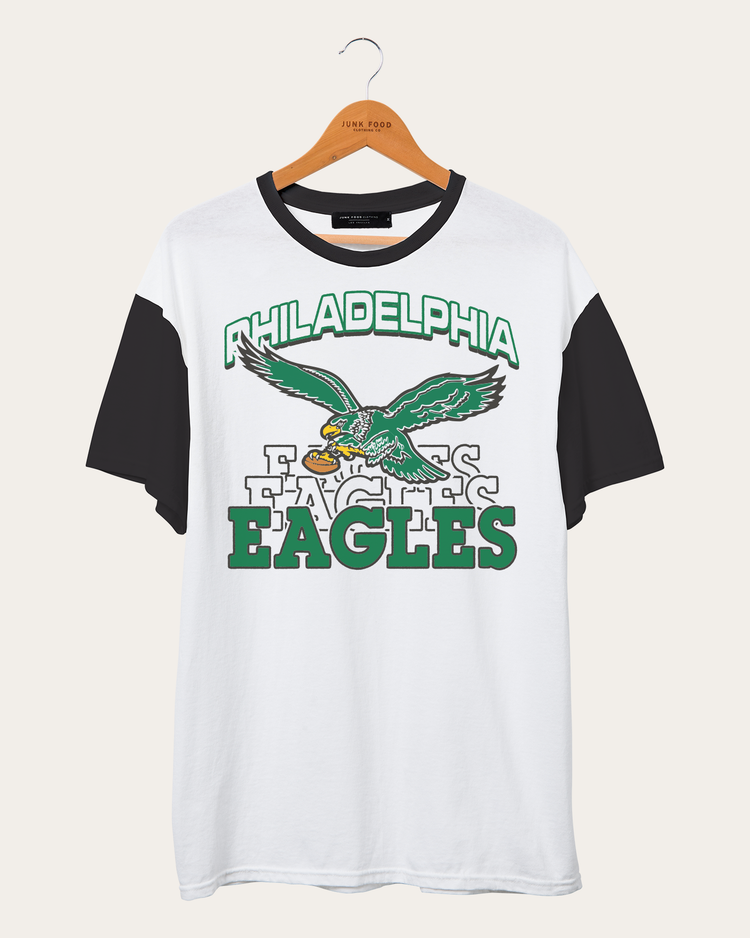 Stay sporty and fresh in our new NFL Philadelphia Eagles Color Block t-shirt. Made of a loose knit 100% cotton jersey and featuring contrast team colors on the sleeve, as well as a graphic logo on the center front of the shirt. This relaxed tee is perfect for whatever you have planned.