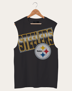 Show off your guns with our new NFL Pittsburgh Steelers Muscle Tank. Made from a loose knit 100% cotton jersey and featuring an oversized graphic logo on the chest. This muscle tank is perfect for the gym or the beach, get yours today.