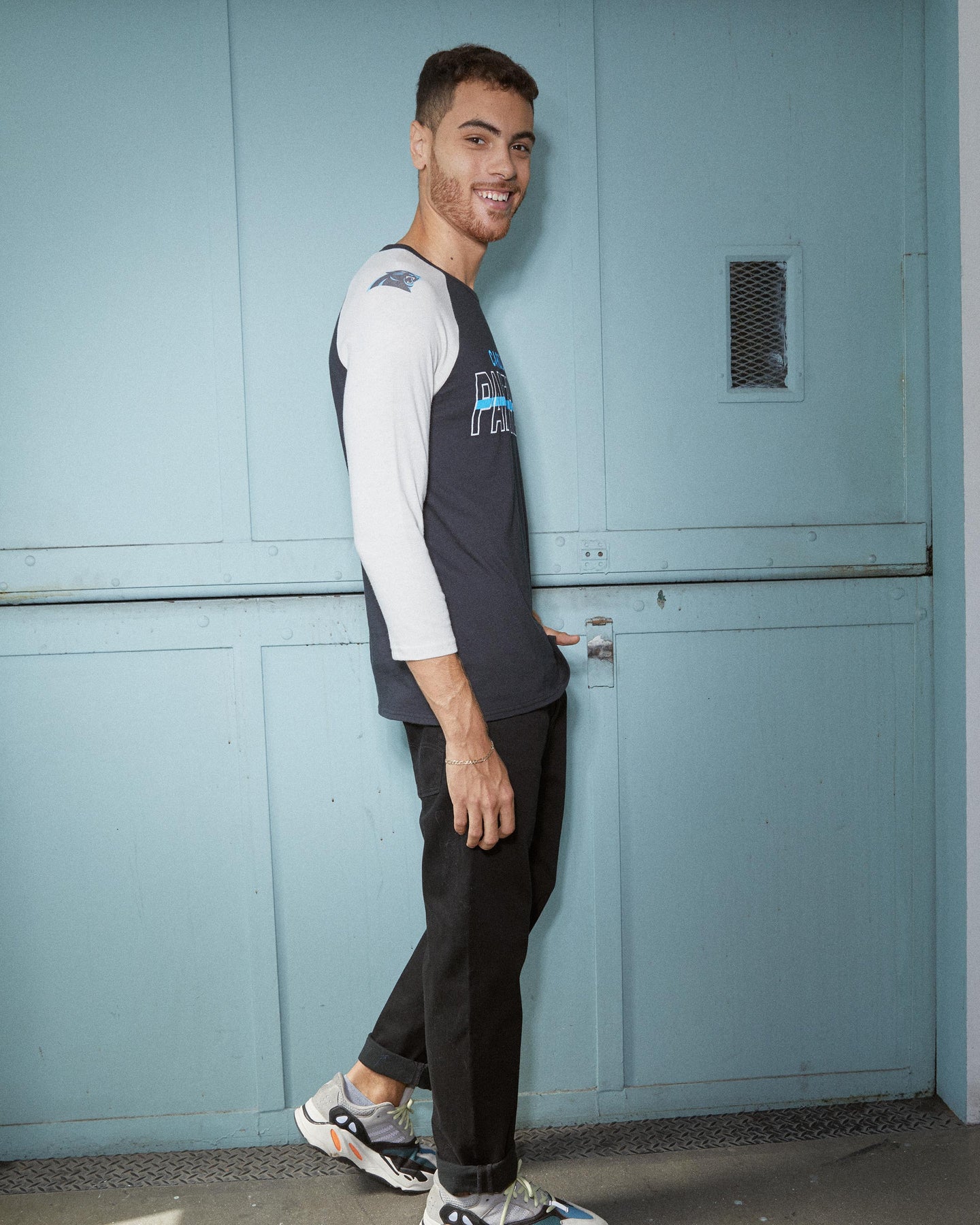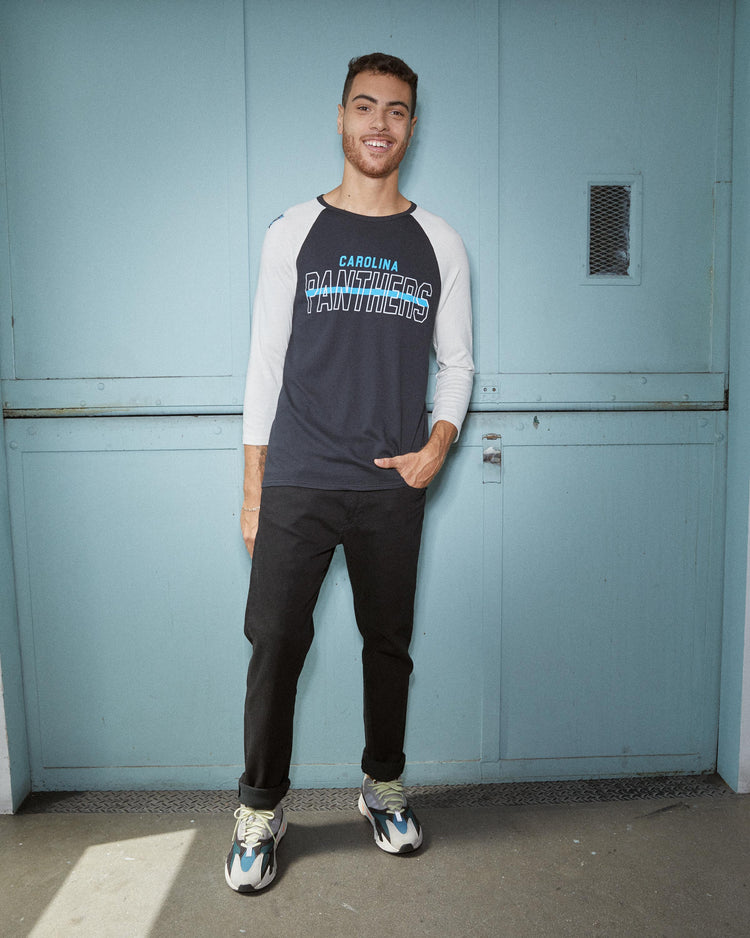 Support the Panthers Junk Food style. Our Vintage two-color Raglan with pop color neckband is a classic staple for a laid-back look on game day.