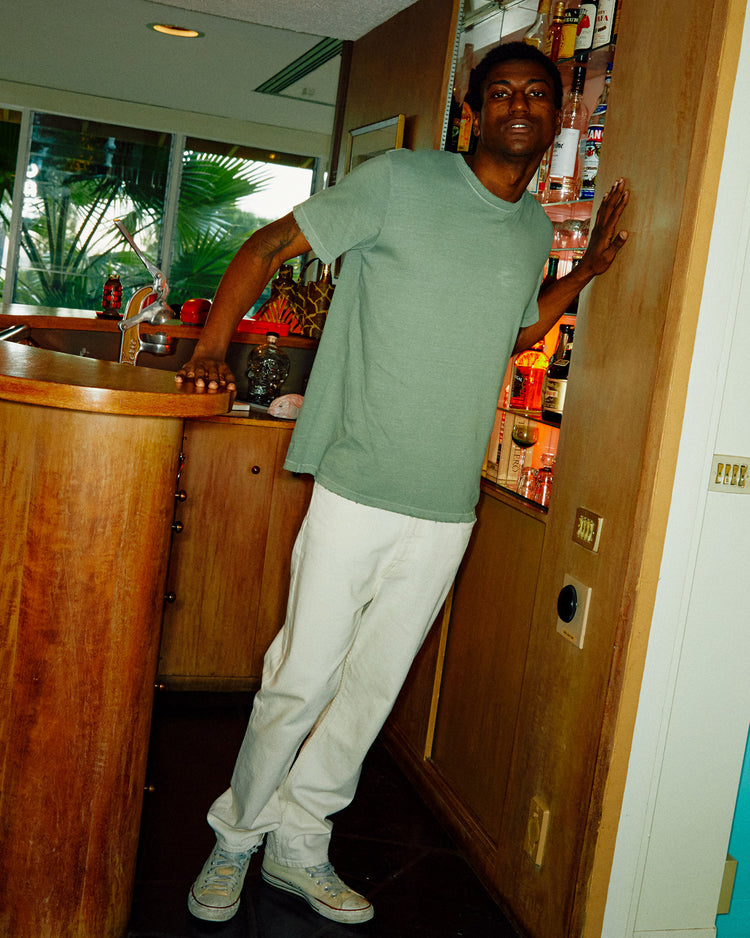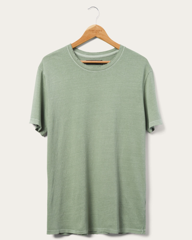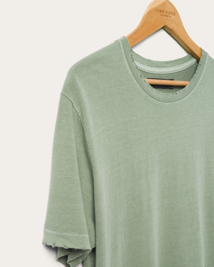 Made in our signature loose-knit 100% cotton jersey, finished with garment dye and washed for a true vintage-worn feel. Featuring a classic crew neck with ladder stitching details & intentionally distressed at neck sleeve & hem.