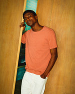 Made in our signature loose-knit 100% cotton jersey, finished with garment dye and washed for a true vintage-worn feel. Featuring a classic crew neck with ladder stitching details & intentionally distressed at neck sleeve & hem.