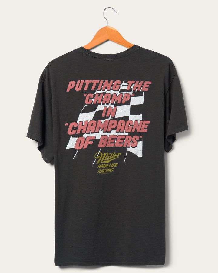 The Unisex Miller High Life Champ in Champagne Flea Market tee features a classic Miller logo with the iconic racing checkered flag. Our Flea Market Tee is made of 100% cotton and given a destructed wash for that vintage feel you love.