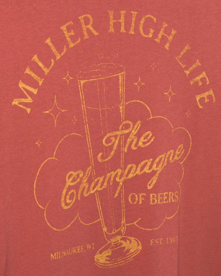 It's the champagne of beers for a reason! Check out our Miller High Life Sportsmans Club Glass Vintage Tee. Made with our signature 100% mid-weight loose knit cotton for that relaxed oversized fit. Featuring an impressive graphic on the front chest and a larger vintage inspired graphic hit on the back. This tee goes perfectly with the champagne of beers!