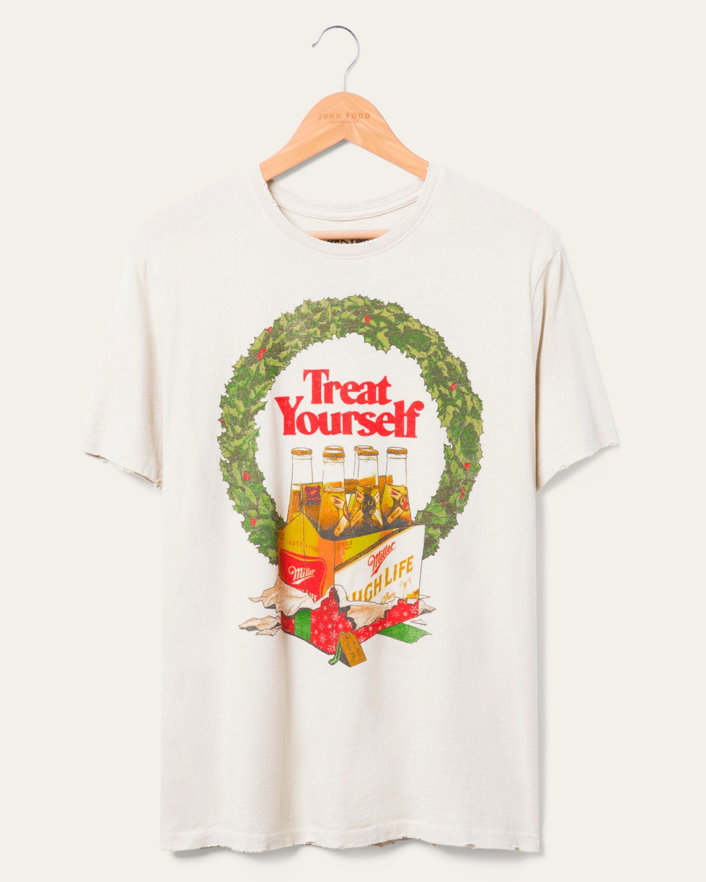 The Miller High Life Treat Yourself Vintage Tee combines classic style with a playful message, encouraging you to indulge in life's simple pleasures. With a soft, worn-in feel, this tee is perfect for those who appreciate the timeless appeal of "The Champagne of Beers" and a little self-care.