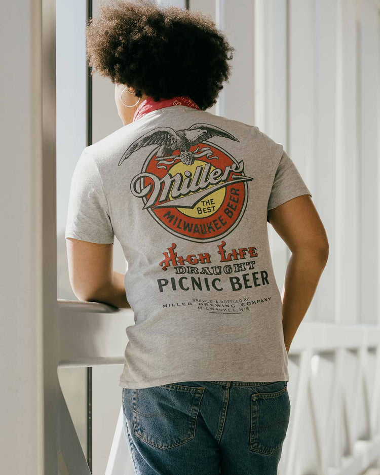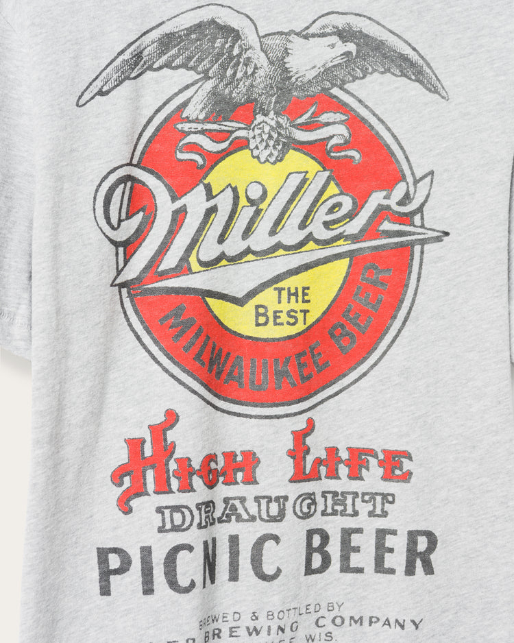 Cheers to timeless taste with our Miller High Life Vintage Tee. This classic tee captures the essence of the iconic beer brand with its vintage design. Crafted with premium fabric, it's as smooth and refreshing as the beverage itself. Whether you're relaxing or raising a glass, this tee is the perfect companion for celebrating the high life.
