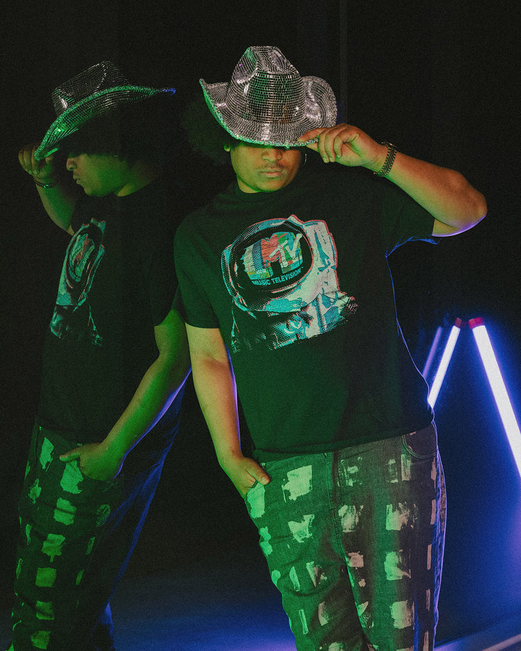 Blast off into retro coolness with our MTV Astronaut Flea Market Tee. Inspired by the golden era of music television, this tee showcases an astronaut floating among colorful stars. Crafted with soft, comfortable fabric, it's a must-have for music and nostalgia lovers. Elevate your style and let your inner space explorer shine!