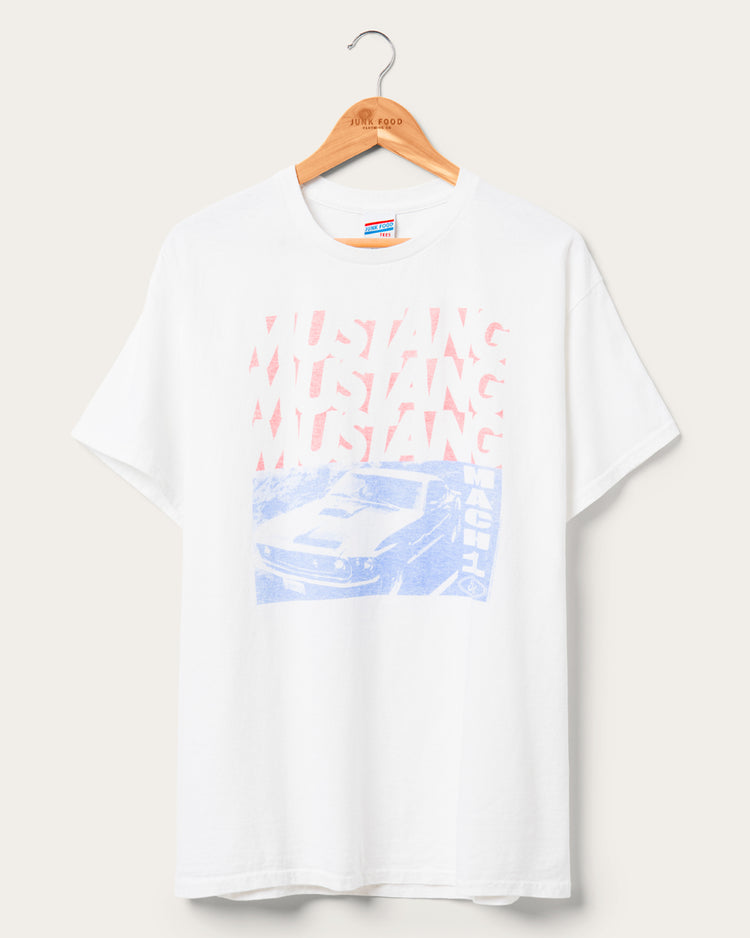 Rev up your style with our Mustang Mach 1 Flea Market Tee. Inspired by the classic American muscle car, known for its raw power and iconic design and featured in red white and blue, this tee's got Americana all over! Classic and timeless this retro tee is a must-have for all car guys & gals who want to showcase their passion in style.