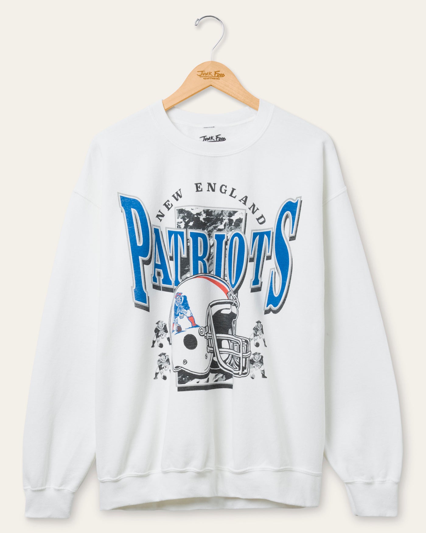Old-school vibes, all out comfort. This Patriots crew fleece brings serious vintage energy with bold graphics and a throwback helmet design. Ultra soft and effortlessly cool it's the kind of sweatshirt that looks like a lucky flea market score but feels like your new game day go to.
