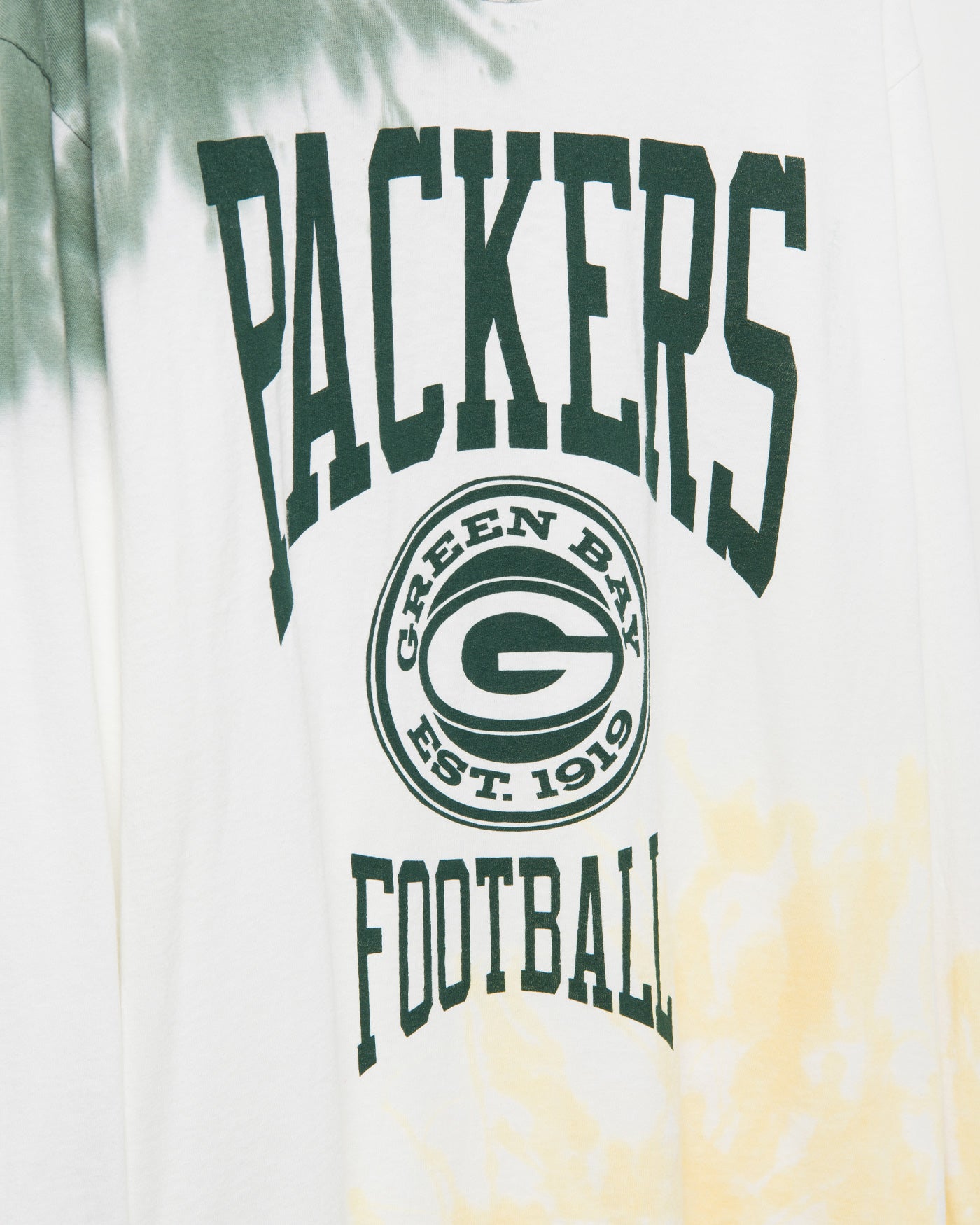 Wearing our Unisex Tie Dye Long Sleeve Flea Market Tee is the ultimate way to rep your team. Made of authentic 100% heavy weight cotton jersey, given a unique placed splatter tie dye treatment and featuring an oversized graphic print at the center front, this relaxed fit style will be your new game day go-to. Go Packers!