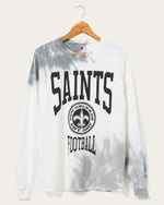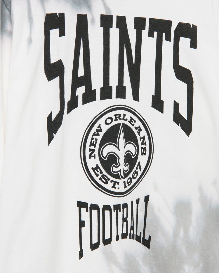 Wearing our Unisex Tie Dye Long Sleeve Flea Market Tee is the ultimate way to rep your team. Made of authentic 100% heavy weight cotton jersey, given a unique placed splatter tie dye treatment and featuring an oversized graphic print at the center front, this relaxed fit style will be your new game day go-to. Go Saints!