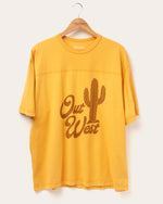 Ride the frontier in style with our Out West Jersey Tee. Featuring a rugged cactus graphic and vintage-inspired lettering, this tee blends Western charm with everyday comfort. Its earthy tone and relaxed fit make it perfect for adventures under the sun or casual city strolls.