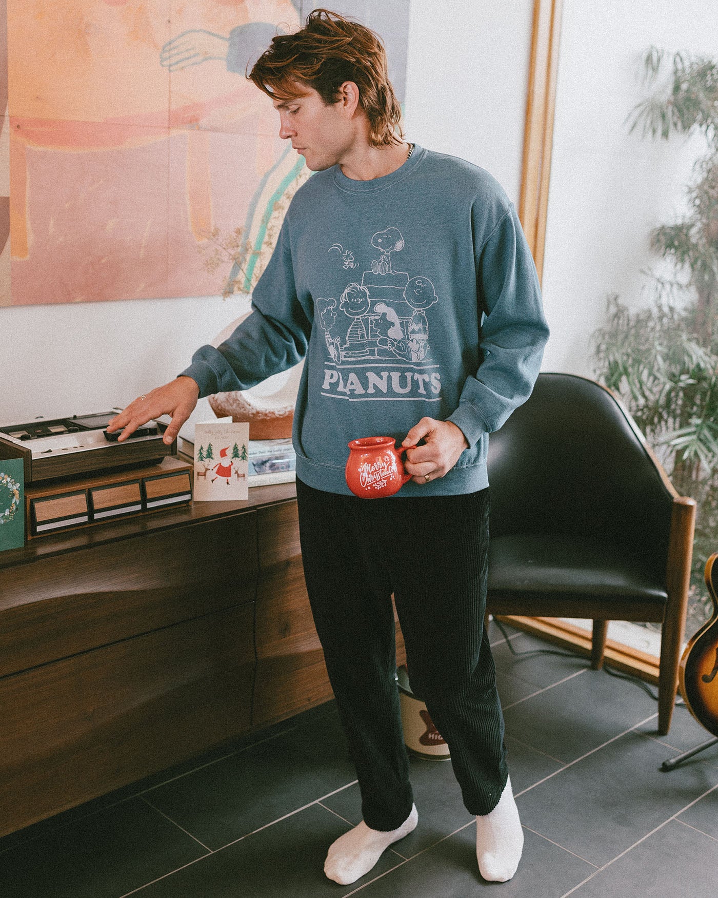Get cozy in our latest Peanuts fleece. Featuring the whole crew in this soft and worn-in flea market fleece we know this style will be your new fave. Our garment dyed Flea Market Fleece is made of a cotton/poly blend and has been given a softener wash for that lived-in and loved feel we know you did.