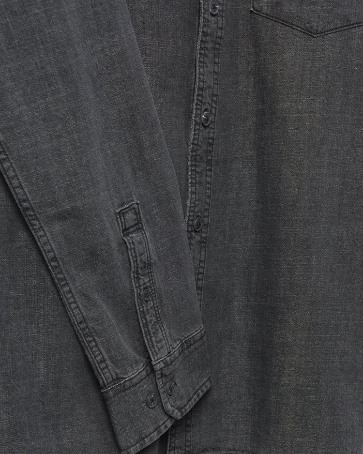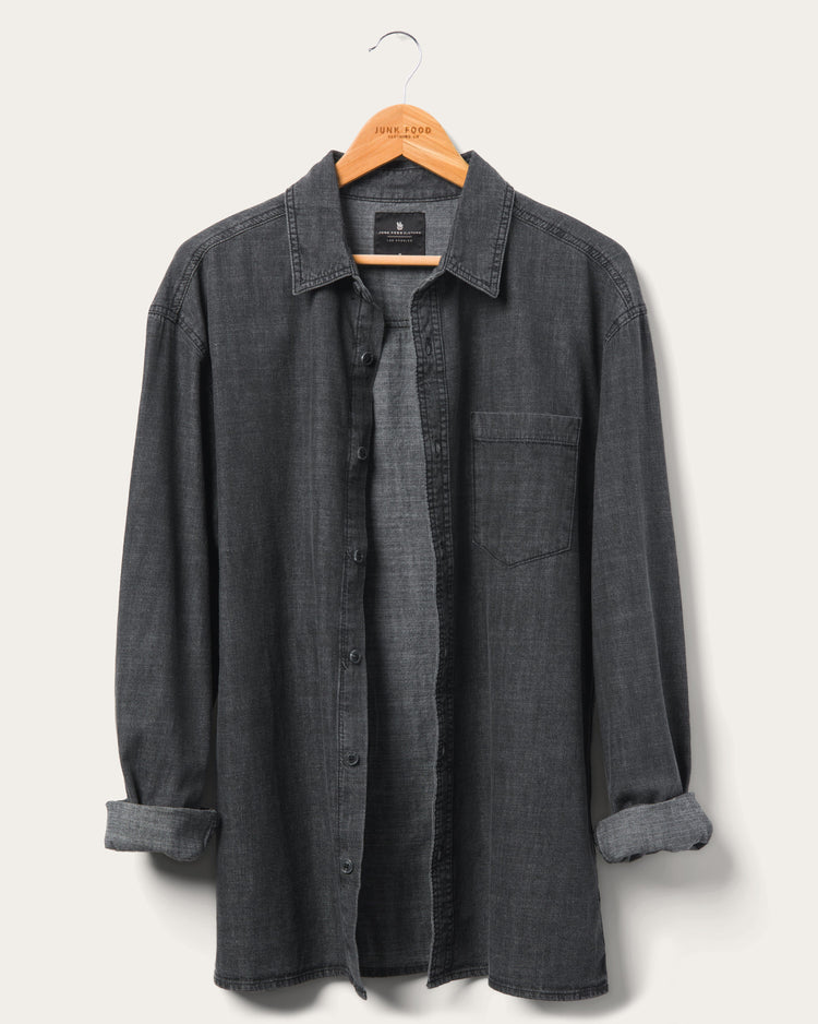 The Randell Denim Twill Shirt is your new wardrobe staple. This denim shirt has an oversized fit, slightly dropped shoulder and large front pocket. You'll wear this for years to come, as long as your babe doesn't try to steal it.