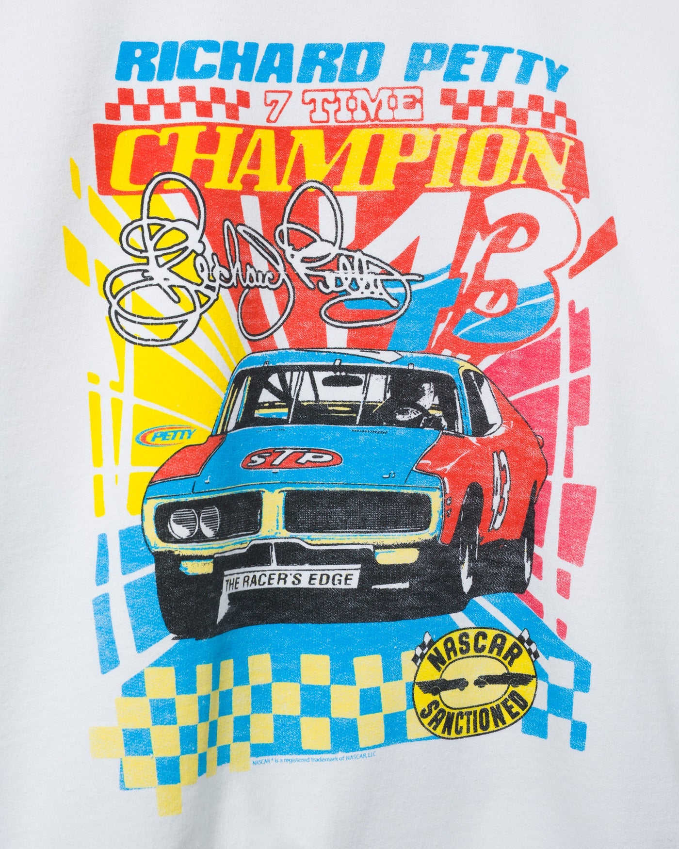 Celebrate racing history with the Richard Petty 7 Time Champ Flea Market Fleece! This soft, cozy fleece features bold graphics honoring the legendary NASCAR champion. Perfect for race days or casual wear, it combines vintage style with comfort for all fans.