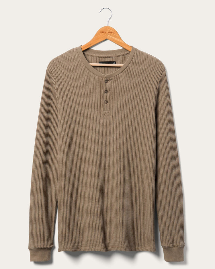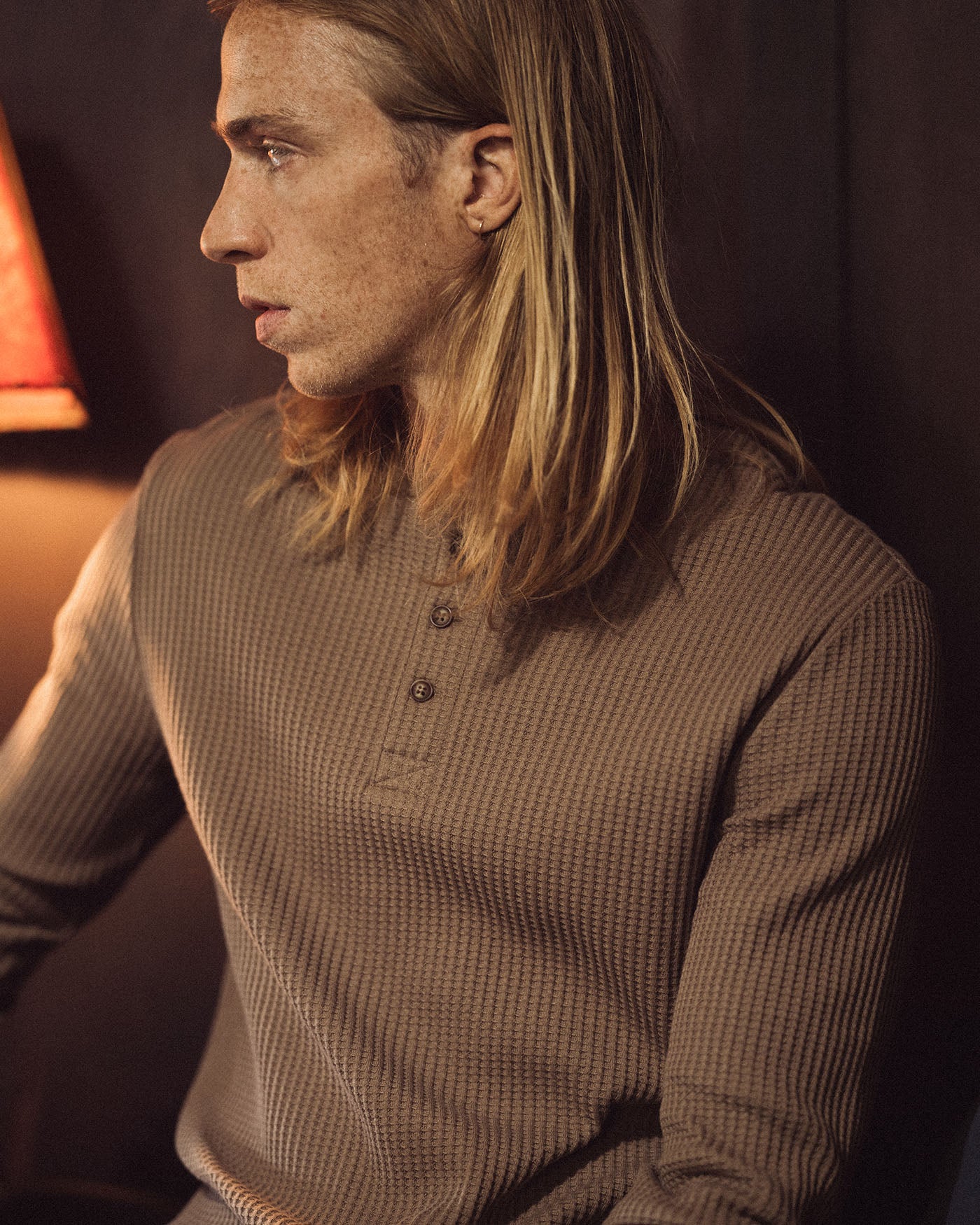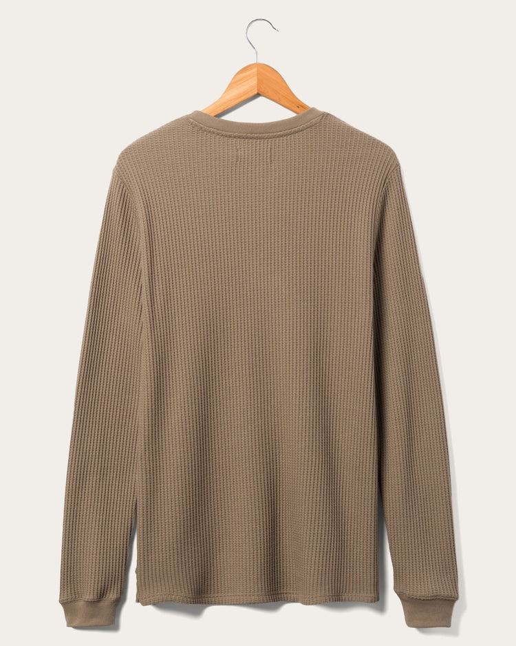 Remember that one thermal waffle knit you wore to shreds? Here's the best and last one you'll need. Our Men's Rider Thermal Henley in Shiitake features a classic three-button neck placket and ribbed cuffs. Soft, super comfortable, and in a classic Vintage White color. Easiest. Choice. Ever