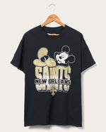 Experience ultimate comfort and fandom with the Saints Mickey Kick Back Tee! This officially licensed NFL apparel showcases the perfect blend of New Orleans Saints team spirit and Mickey Mouse's timeless charm. Relax in style and let your passion for football and fun shine through with this must-have shirt. Touchdowns guaranteed!