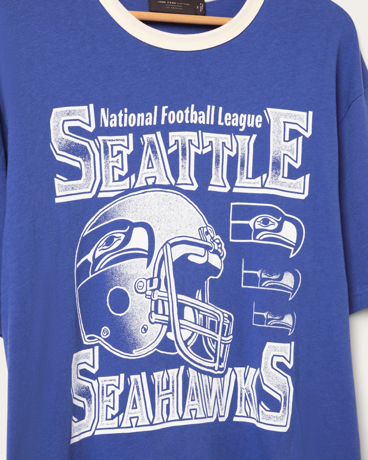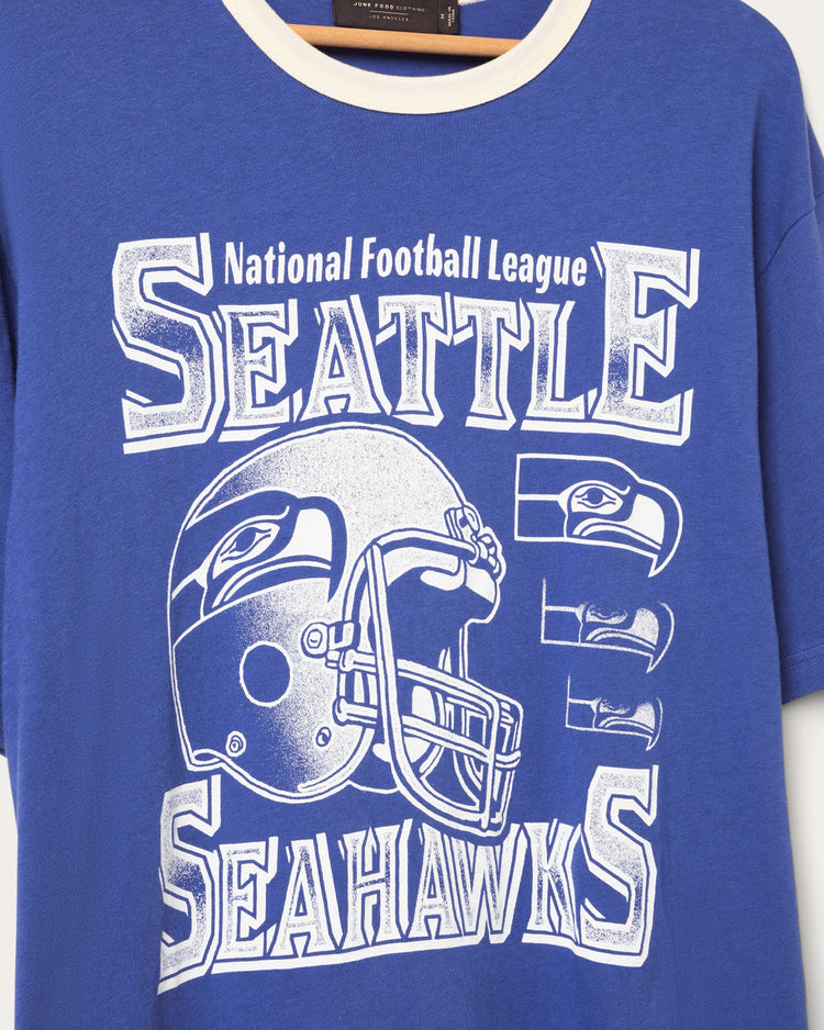 Sport your Seahawks pride with the Oversized Ringer Tee, an officially licensed product that combines vintage style with modern comfort. Featuring contrasting ringer details and bold team graphics, this relaxed-fit tee is crafted from soft, breathable fabric. Perfect for game day or casual wear, it makes a standout statement.