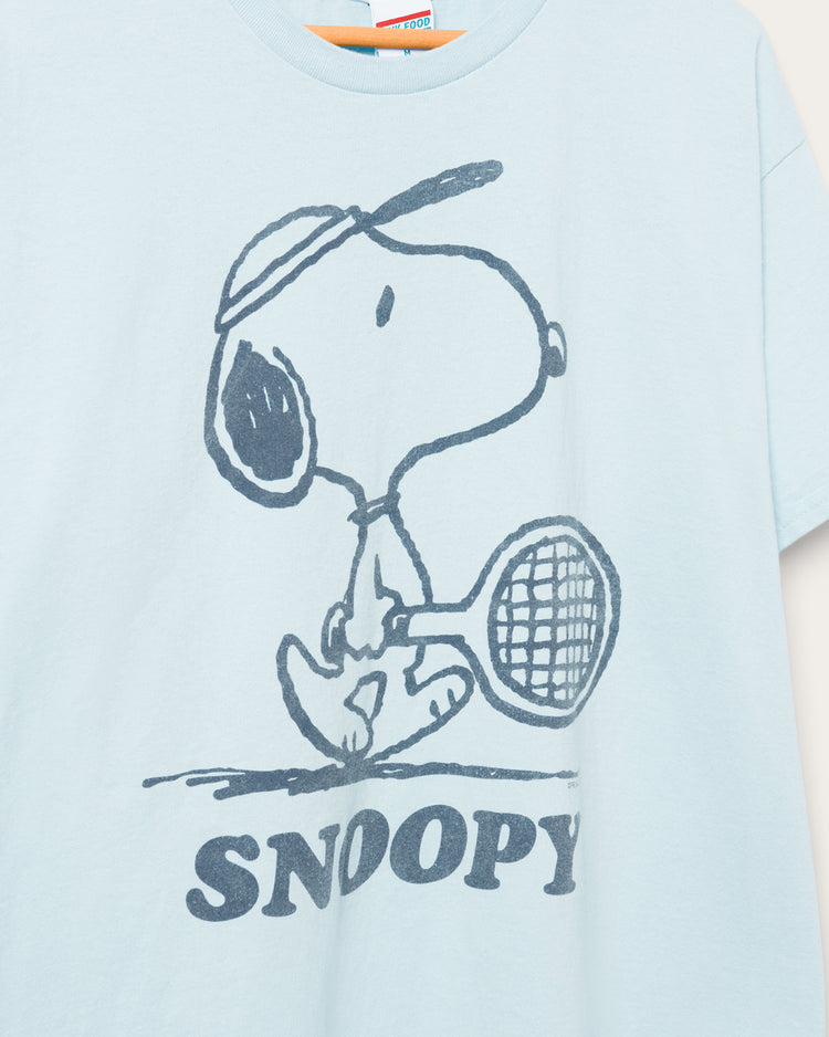 Serve up some summer fun with our Snoopy Tennis Flea Market Tee! Featuring everyone's favorite beagle getting his game on, this tee brings a smile to sunny days. Crafted for comfort and style, it's the perfect match for casual outings and laid-back adventures. Ace your summer wardrobe with Snoopy!