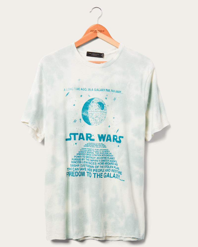 In a galaxy far, far away....there were some amazing vintage-inspired Junk Food tees just waiting for your cart! Our Star Wars™ Far Far Away Vintage Tee in Tie Dye features a graphic of the Death Star above the infamous title crawl. This Vintage Tee is made of 100% cotton, features destruction details like grinding on the neck, hem and sleeve and has a cloud tie dye treatment applied.