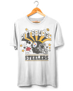 Born to play? More like born to Win! Our Steelers Joe Cool Born to Play Tee is made just for you. Featuring a fun and fresh Snoopy X Steelers graphic on the front of the tee. Made on our fan tee silhouette that is made out of authentic 100% cotton, that really gives it that vintage feel. Don't miss out on the collab of the century!