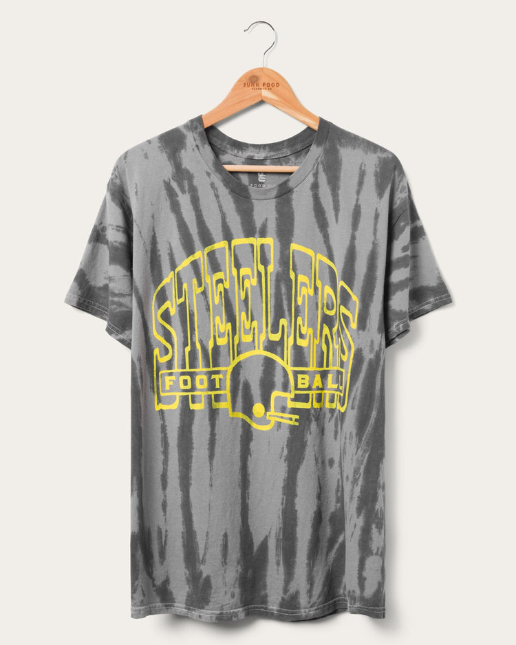 Unleash your team spirit with the Steelers Tie Dye Short Sleeve Tee! This NFL-licensed apparel combines Pittsburgh Steelers love with a trendy tie-dye design. Embrace comfort and style while cheering on your team in a fun and vibrant way. Stand out from the crowd and show your support in bold fashion!