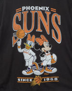 Step into the court with a touch of Disney magic wearing our Suns Disney Squad Tee! Join the ultimate dream team as your favorite Disney characters shoot hoops in Suns gear. With playful and vibrant design, this tee is a slam dunk for Suns fans and Disney lovers alike. Unite your fandoms and let the fun begin!