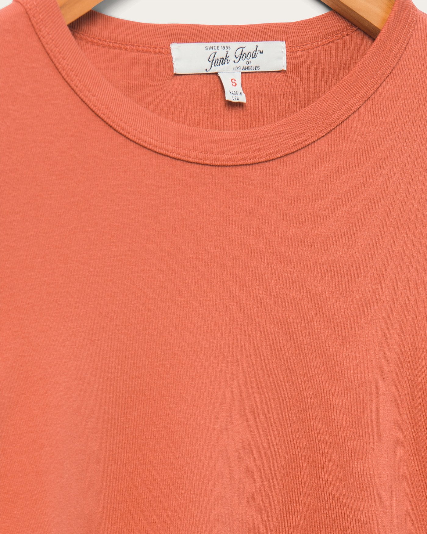Made in our heavy-weight cotton rib Jersey, finished with garment dye & softener wash. Featuring a classic crew neck, longer slim-fitting sleeve, extended body length for tucking & finished with ladder stitching details.