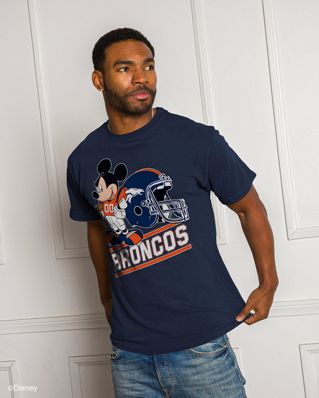 Support your team with our Disney Mickey Came to Play Tee. Made out of 100% cotton that's super comfortable. Featuring a soft hand screen print on the chest and a classic crew neck fit. This unisex tee is ideal for Disney and football fans alike. Go Broncos!