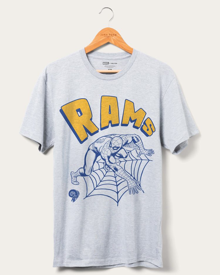 Channel your inner superhero with our Marvel Spider-Man Web Slinger Tee. Made out of 90% cotton and 10% polyester, featuring a soft-hand screen print. This relaxed fit unisex tee is perfect to suit up with on gameday or movie night. Go Rams!