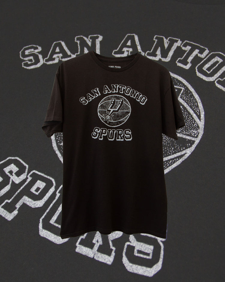 JUNK FOOD x LUCKY NBA We teamed up with Lucky Brand & The NBA to re-create the nostalgic vibe of the 90's with our Spurs Timeout Tee. This classic crew tee features a throwback fit, made in 100% authentic cotton & finished with our signature Distress Wash for softness like it's been worn for years.
