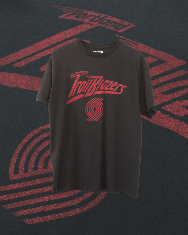 JUNK FOOD x LUCKY NBA We teamed up with Lucky Brand & The NBA to re-create the nostalgic vibe of the 90's with our Trailblazers Timeout Tee. This classic crew tee features a throwback fit, made in 100% authentic cotton & finished with our signature Distress Wash for softness like it's been worn for years.