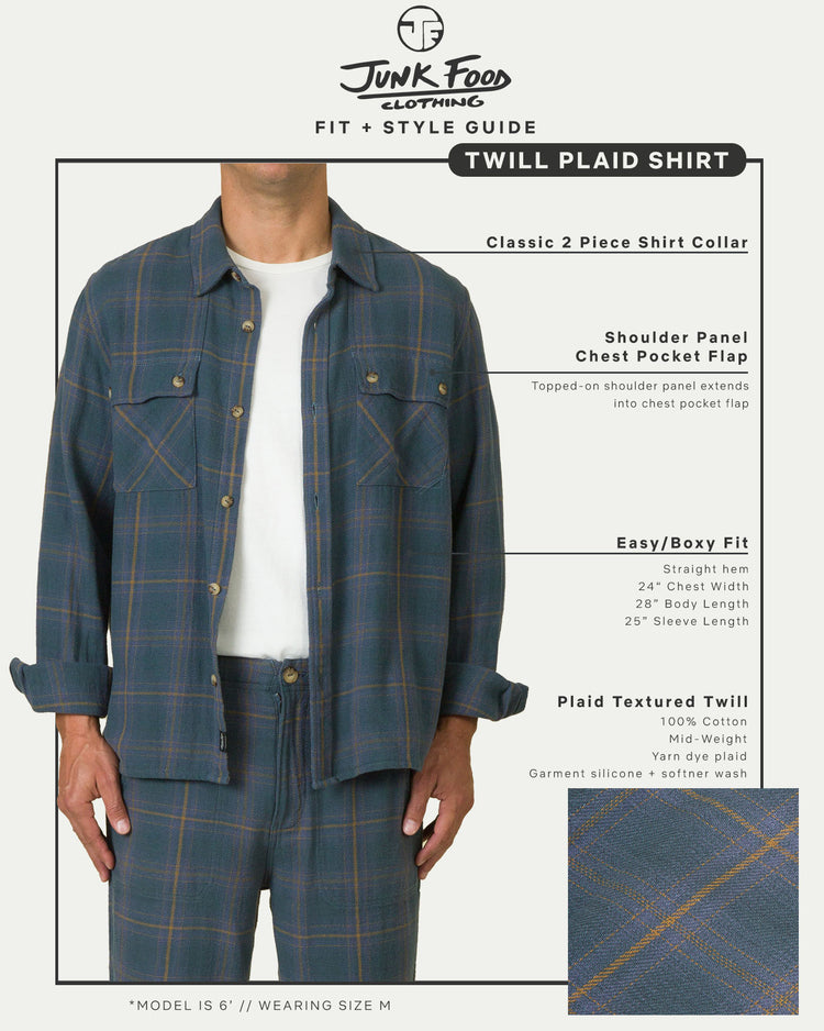 Our contemporary take on the universal plaid flannel shirt. The modern unisex fit looks effortlessly cool on anyone & pairs perfectly over all your favorite JF tees along with any of our unisex pants for a full Junk Food look. Model's outfits feature the Unisex Straight Twill Plaid Pant as a matching set.