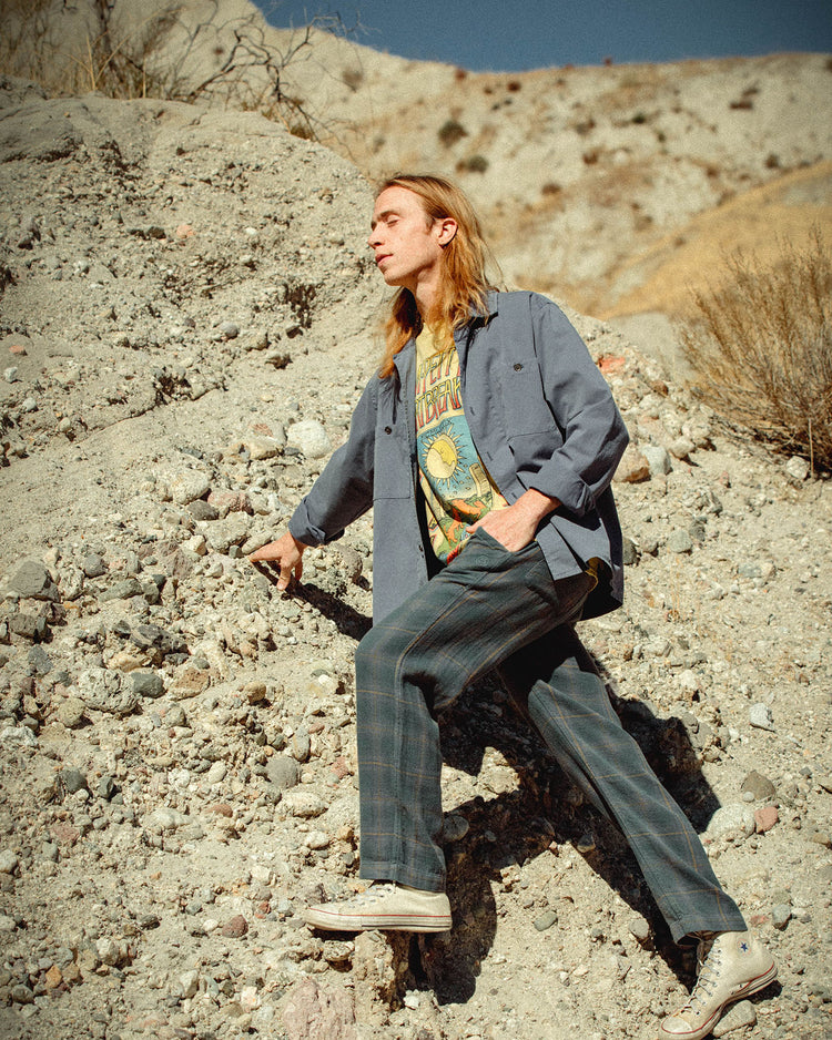 Our nod to the infamous work shirt that's been a staple over multiple decades. The modern unisex fit looks effortlessly cool on anyone & pairs perfectly over all your favorite JF tees along with any of our unisex pants for a full Junk Food look. Model's outfit features the Unisex Straight Twill Plaid Pant.