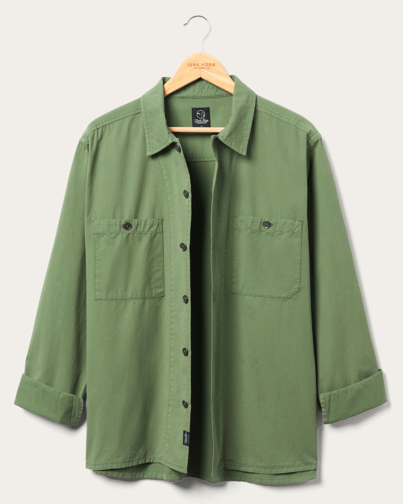 Our nod to the infamous work shirt that's been a staple over multiple decades. The modern unisex fit looks effortlessly cool on anyone & pairs perfectly over all your favorite JF tees along with any of our unisex pants for a full Junk Food look. Model's outfit features the Unisex Utility Twill Straight Pant.