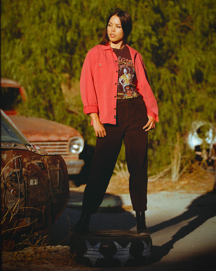 Our nod to the infamous work shirt that's been a staple over multiple decades. The modern unisex fit looks effortlessly cool on anyone & pairs perfectly over all your favorite JF tees along with any of our unisex pants for a full Junk Food look. Model's outfit features the Unisex Utility Twill Straight Pant.