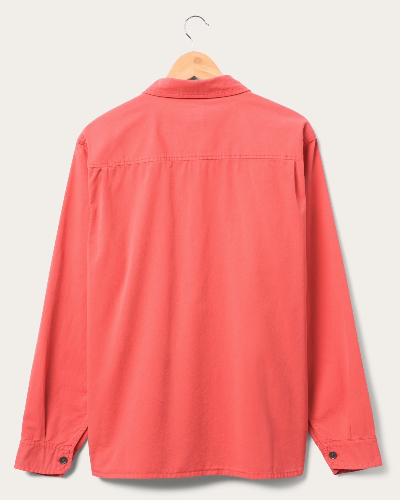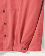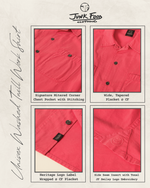 Made in a premium, mid-weight brushed cotton twill, featuring garment dye & softener wash with a laid-back, boxy fit. Inspired by vintage field & mechanic's shirts, we blended the classic elements with modern styling of the camp-style & wide placket, dropped shoulder & ever so slight crop, straight hem. Classic design elements include: double chest pockets, back yoke seam with subtle pleats. Signature details include: branded gunmetal buttons, JF Heritage Logo label wrapped at center front placket, our signature mitered corner pocket with zig-zag stitching & finished with a tonal JF smiley logo embroidery triangle dropped on at the side seam.