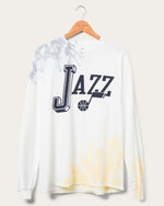 Wearing our Tie Dye Flea Market Long Sleeve Tee is the ultimate way to rep your team. Made of authentic 100% heavy weight cotton jersey, given a unique placed splatter tie dye treatment and featuring an oversized graphic print at the center front, this relaxed fit style will be your new game day go-to. Go Jazz!!