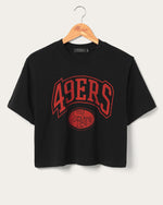 Own the spotlight with the Women's 49ers Blitz Mock Neck Crop. This chic crop top redefines game day fashion, fusing modern flair with team spirit. Embrace the intensity of 49ers football in a silhouette that's as bold as your loyalty. Elevate your style and showcase your pride with this fashion-forward statement piece.