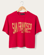 Unleash your dual threat style with the Women's San Francisco 49ers Dual Threat Mock Neck Crop. This trendy piece redefines game day fashion, seamlessly blending sporty vibes with a chic silhouette. Celebrate your 49ers pride in a crop top that's as dynamic as your team. Elevate your wardrobe with this fashion-forward tribute to football fandom.