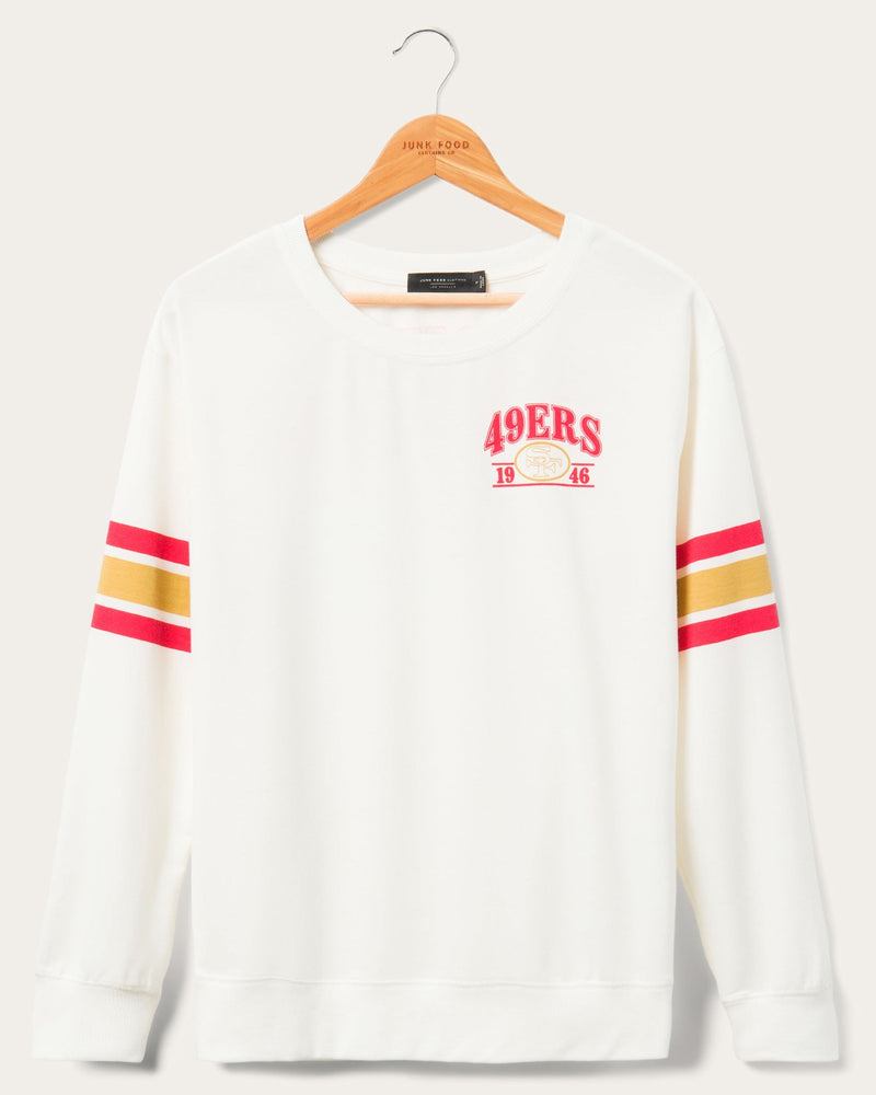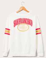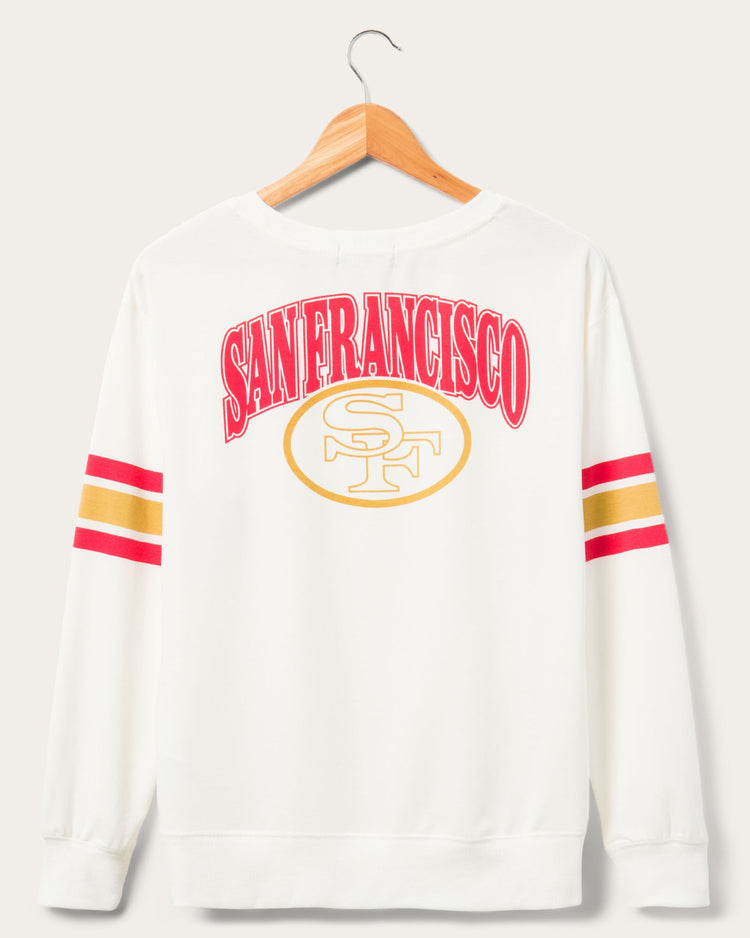 Are you ready for your new favorite crew? Well, we certainly believe so and that is why we have our Women’s 49ers Kickoff Crew! Featuring two impressive retro graphics on the front and the back of the crew. This crew look like you just scored it after hours of digging at the thrift store. Grab yours and proudly represent your 49ers!