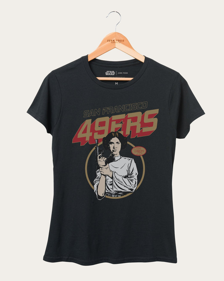 Save the galaxy in our Star Wars™ Princess Leia Women's Tee. Featuring a soft-hand screen print on the front and made of 100% cotton, this contoured, feminine fit tee is the perfect combination of pop culture and sports culture for fans of both. Go 49ers!