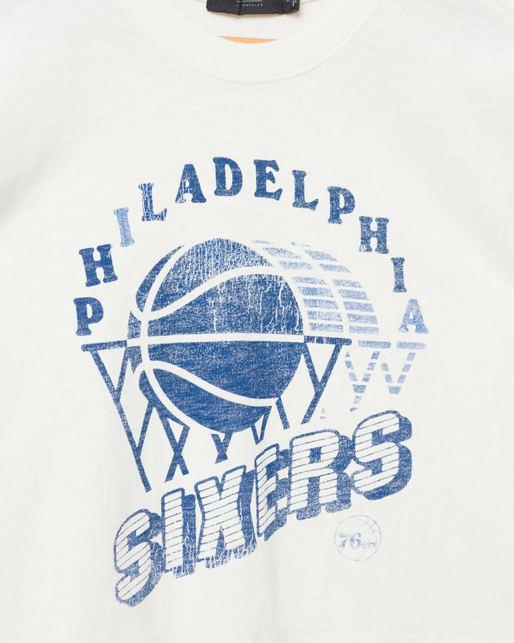 Unleash your court-side charm with the Women's 76ers Short Sleeve Crop Mock Neck Tee! This crop tee showcases your love for the Philadelphia 76ers in a sleek mock neck design. With a flattering crop cut and sporty logo, you'll command attention and score big on style while cheering for your team!