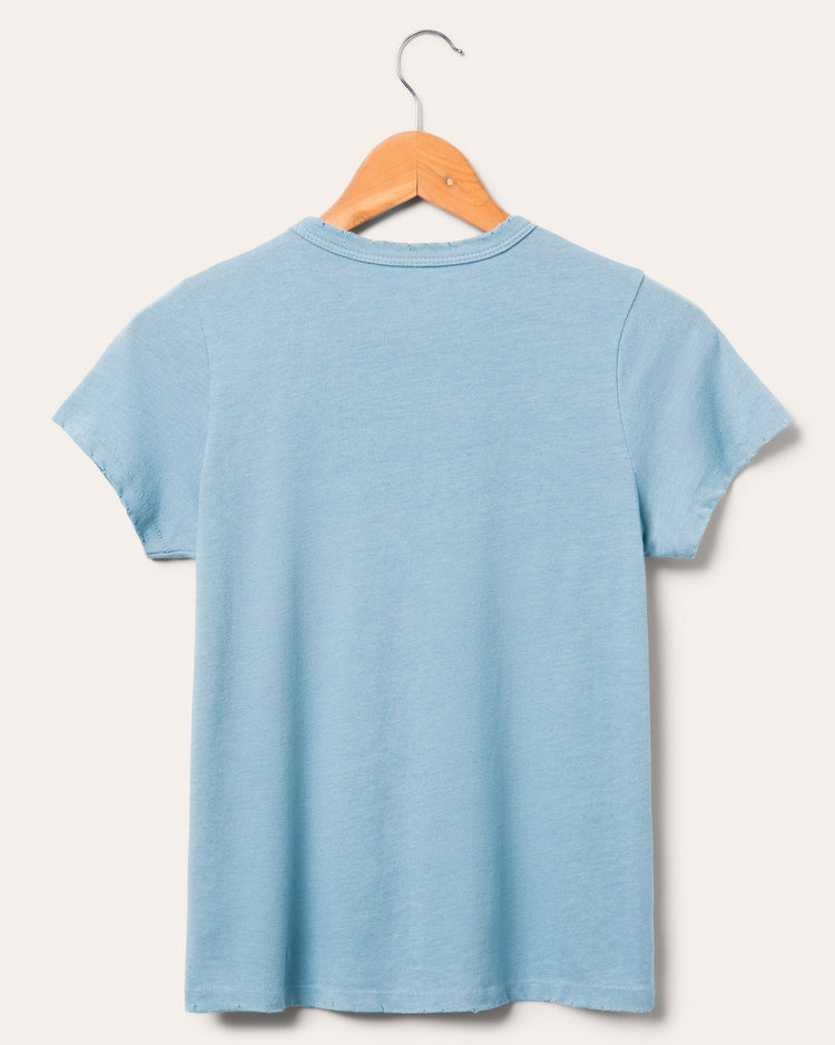 This tee runs small. For a fitted look, choose your normal size. For a regular fit, choose one size up. Model is wearing size small.