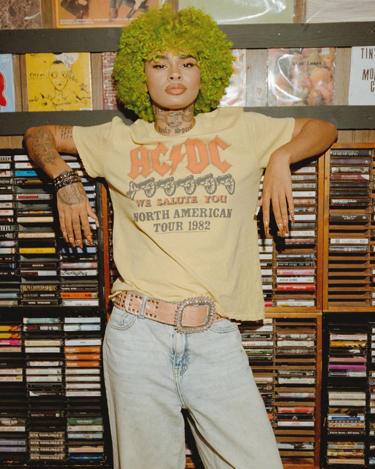 Rock out in style with our Women's AC/DC North American Tour 1982 Vintage Tee! Featuring iconic tour graphics, this tee captures the energy and excitement of one of rock's legendary concerts. With vintage vibes and classic appeal, it's the perfect choice for any fan ready to unleash their inner rocker chick.