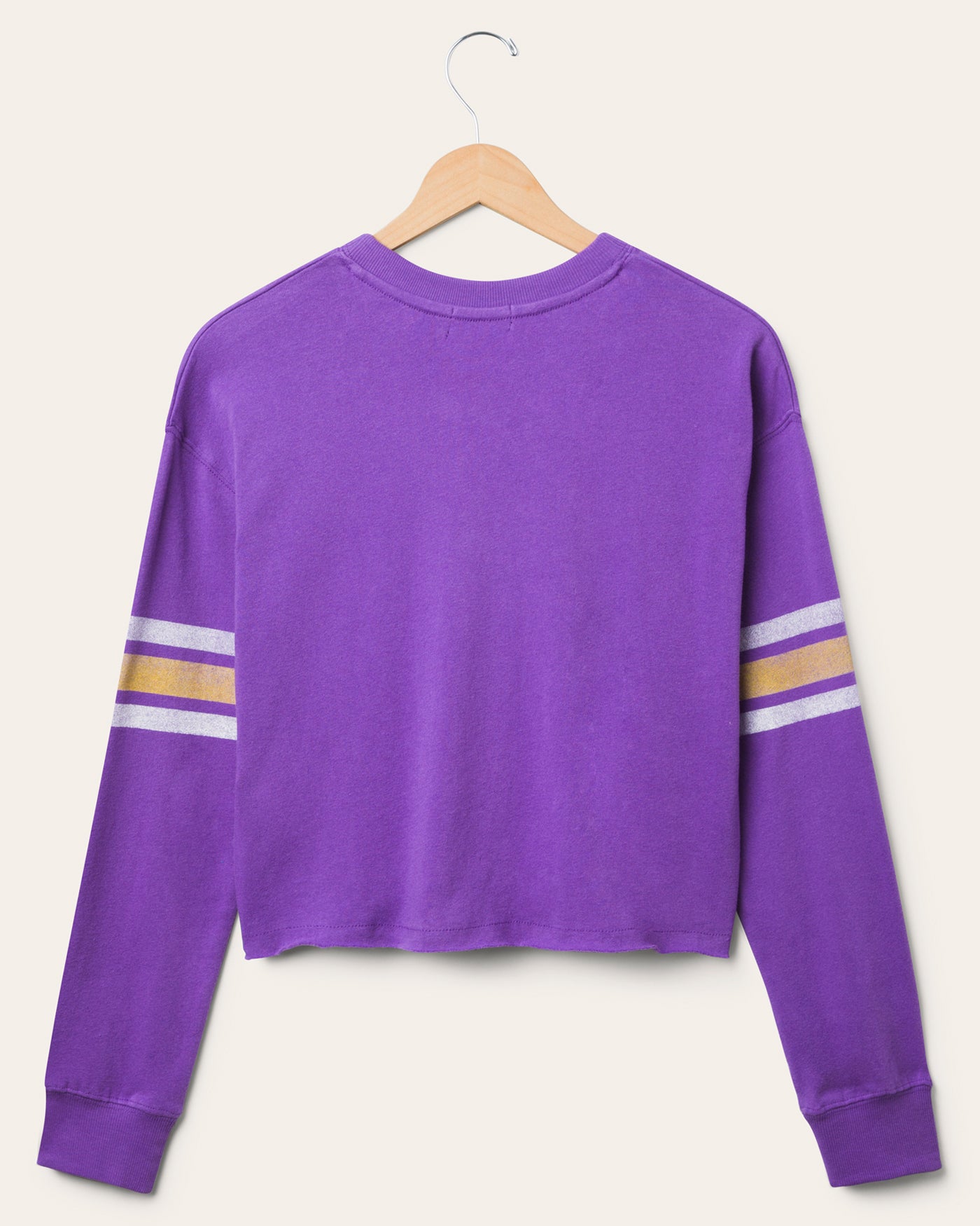 Throw it back in style with the Women's Baltimore Ravens Retro Crop Fleece. This cozy, cropped pullover features bold vintage graphics and super soft fleece for that worn in, game day feel. Perfect for fans who love classic Ravens flair with a modern twist.