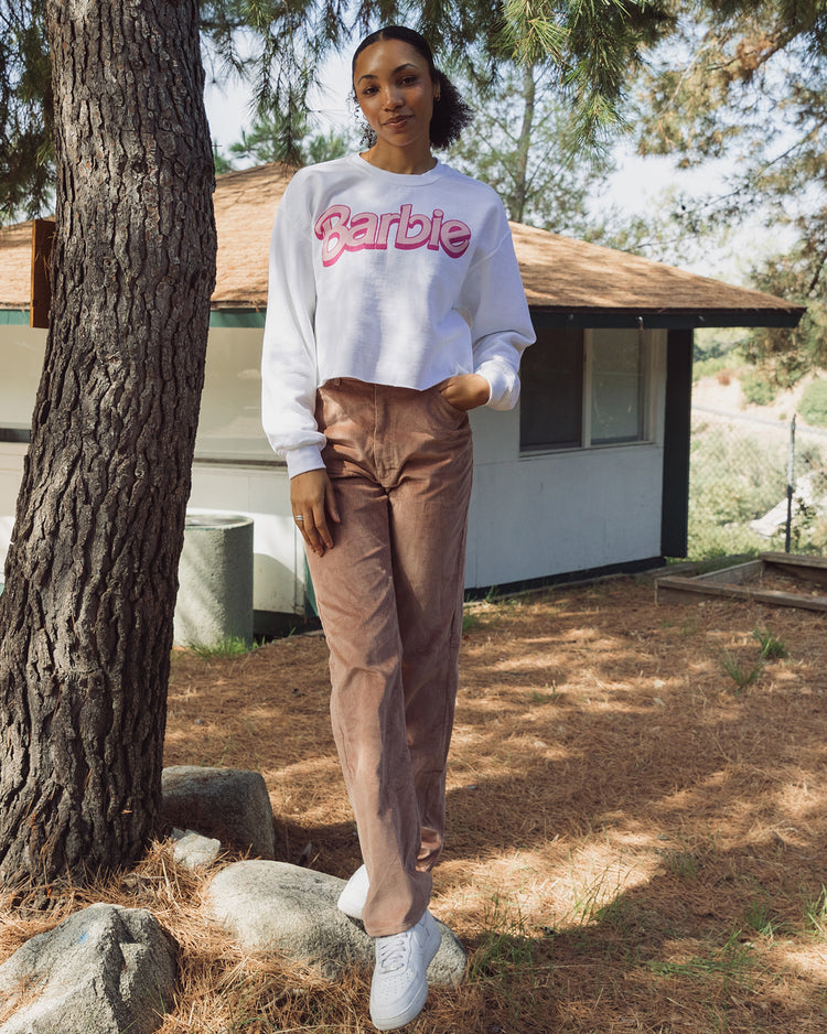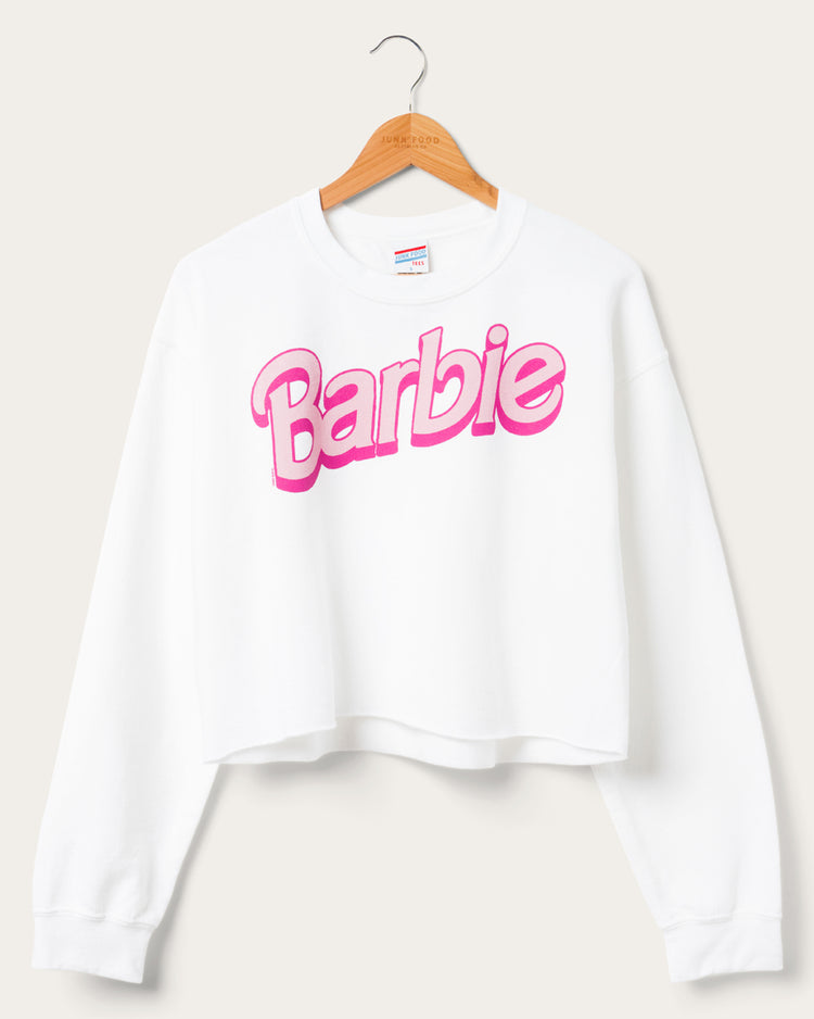 Elevate your style with the Women's Barbie Cropped Flea Market Fleece. A nostalgic blend of comfort and flair, this fleece features Barbie-inspired graphics on a trendy cropped silhouette. Perfect for cozy days or chic outings. Embrace fashion-forward fun with this must-have piece.